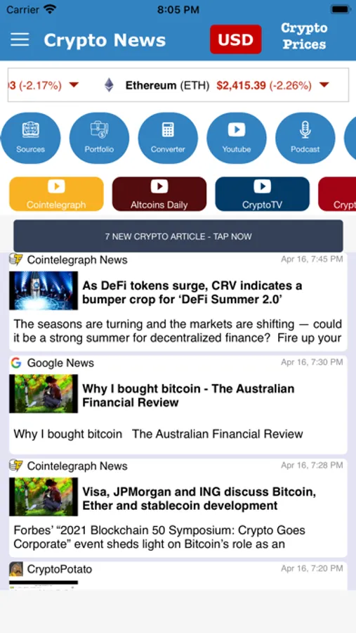 Now you can even check the latest bitcoin to USD price, Bitcoin to Euro price and Ethereum to USD price live on Latest News screen and You can change that currency from Preferred Currency Screen.
