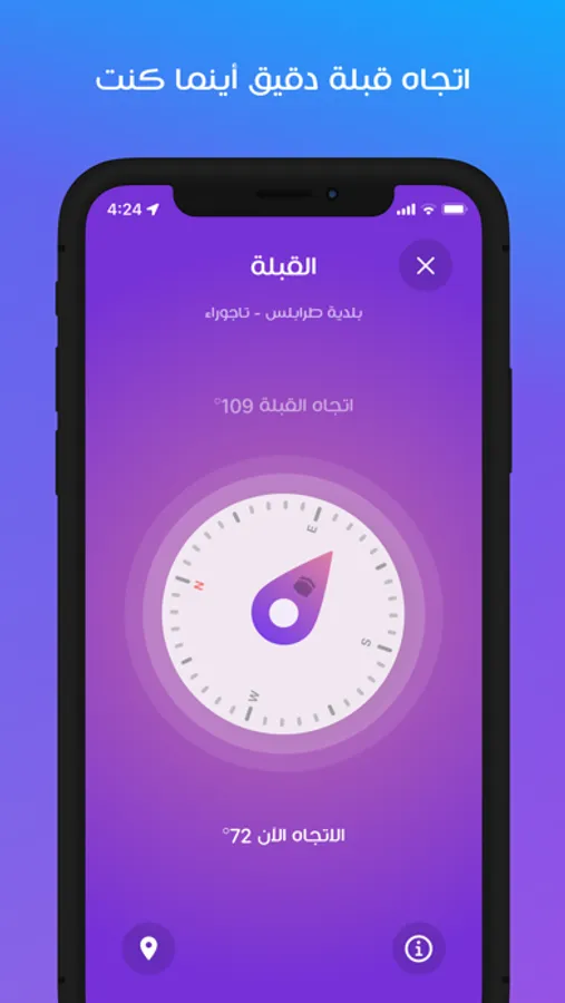 • تحديد اتجاه القبلة بدقة مع تحديد القبلة على الخريطة