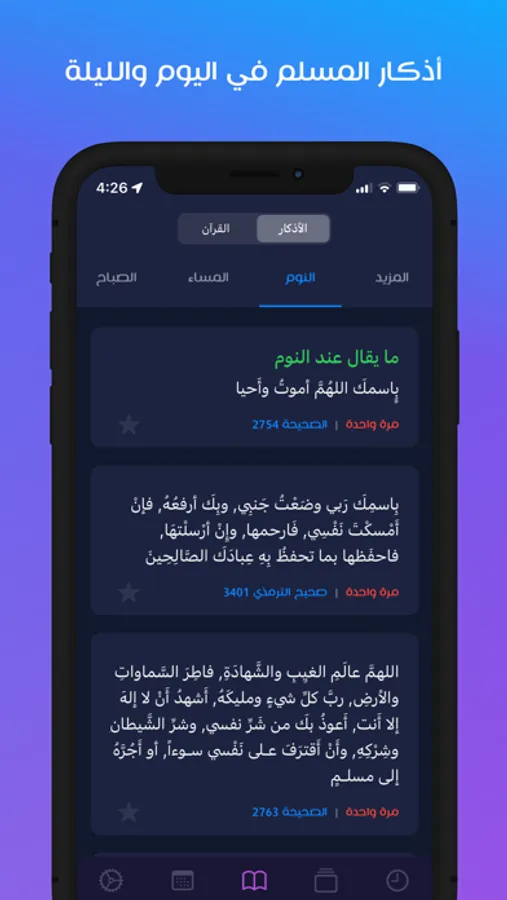 • أذكار الصباح والمساء والنوم والصلاة والصيام والمسجد والمنزل وغيرها