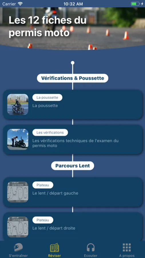 Grâce à l'application Fiches Plateau Moto, il est très simple de réviser ses fiches,
