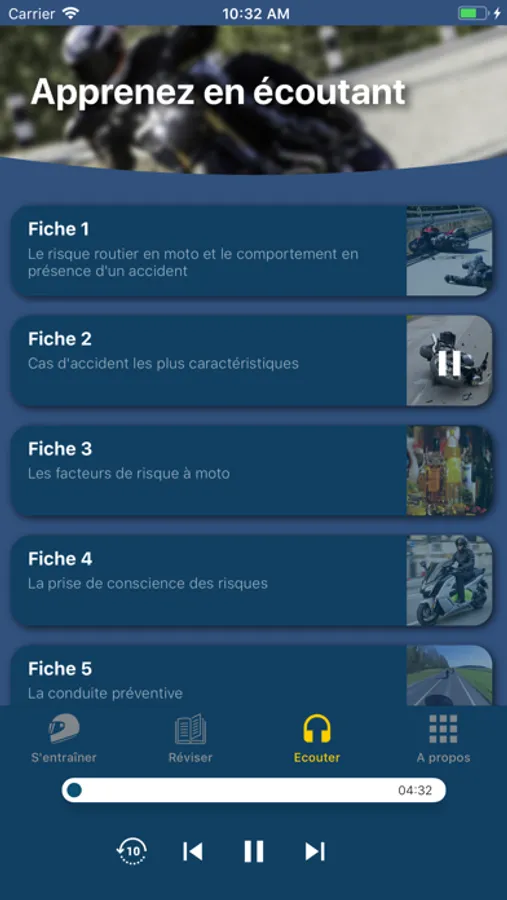 Fiches Plateau Moto contient les 12 fiches, disponibles au format audio et numérique :
