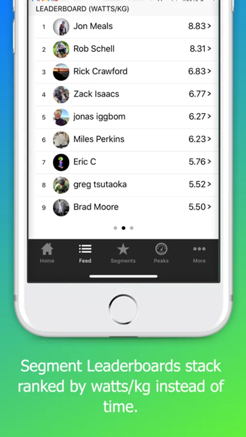 1. Segment Achievements stack ranked by watts per kilogram for cyclist and runners who train with power meters.