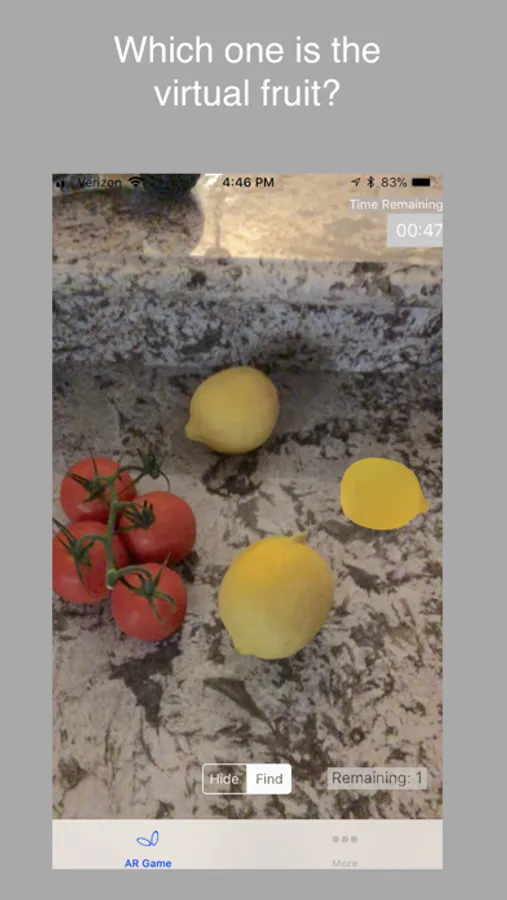 In the play mode, tap the objects that you find to remove it. If the object is not removed by the tap, get closer to it and try again. Game ends once you have found all objects or when time expires.