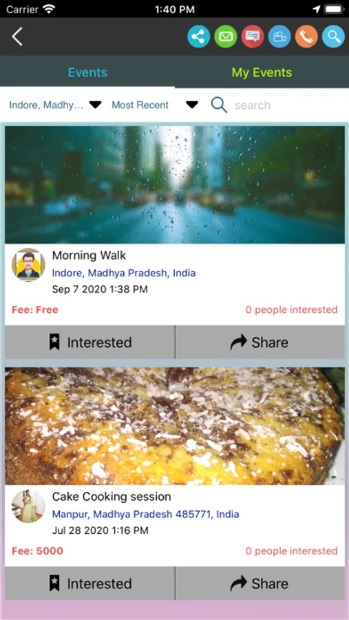 • Post and discover events happening near you or anywhere in the world.