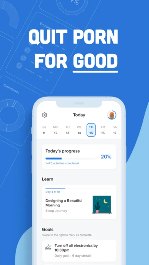 "Not only Fortify helped me with nofap and staying away from porn, the app has also kept me more organized with my goals! I've been studying and exercising more which has lifted my mood!"