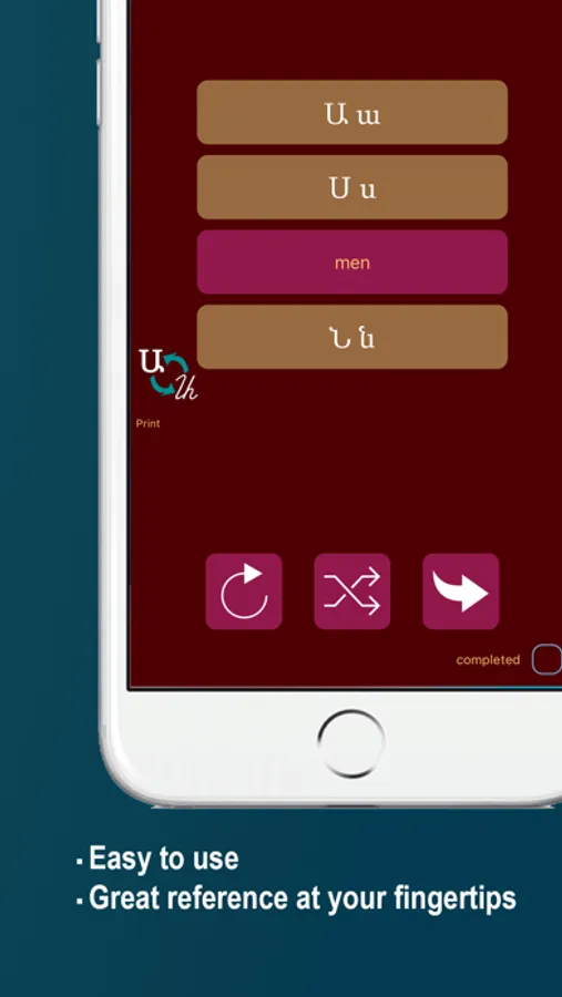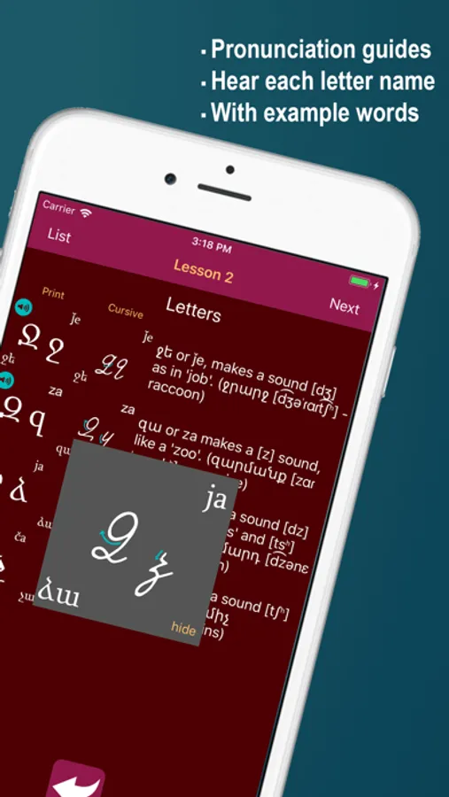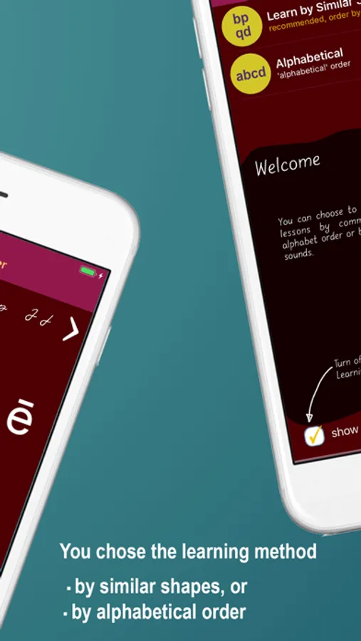 After completing each lesson, a multiple choice quiz will help you test what you've learned. With its simple interface you can learn the alphabet in a few days.