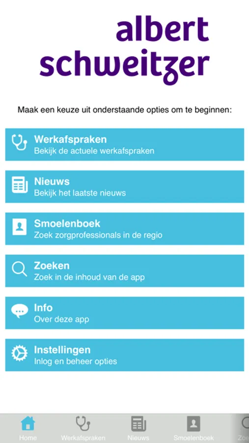Deze App is een middel om de samenwerking en communicatie tussen het Albert Schweitzer ziekenhuis en haar verwijzers te bevorderen.