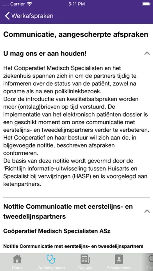 In deze App vindt u het smoelenboek van huisartsen, medisch specialisten, specialisten ouderengeneeskunde en andere relevante personen. Contactgegevens zoals telefoonnummers en spoednummers van huisartsen, specialismen, laboratoria zijn beschikbaar. Er zijn werkafspraken opgenomen die voor alle betrokkenen van belang zijn. Hier houden we u op de hoogte van actueel regionaal nieuws over bijvoorbeeld het ASz, huisartsen, de Huisartsenpost, de SEH, etc.