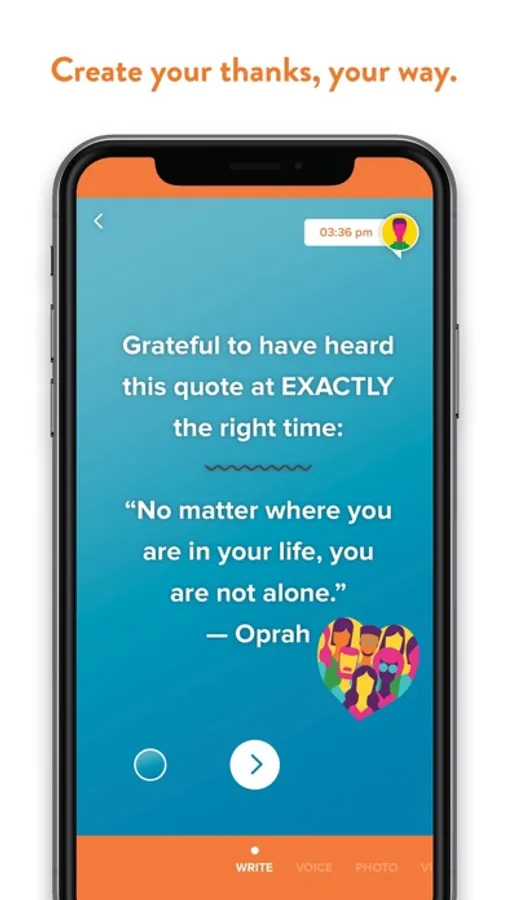 ** “This app offers a technological buffet of gratitude-enhancing options. [...] My favorite feature is this candle-flame frame that chooses a random photo from your library and encourages you to ‘create a warm feeling around the image.’” - Mic.com