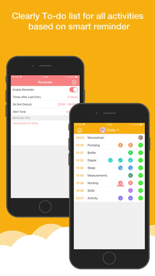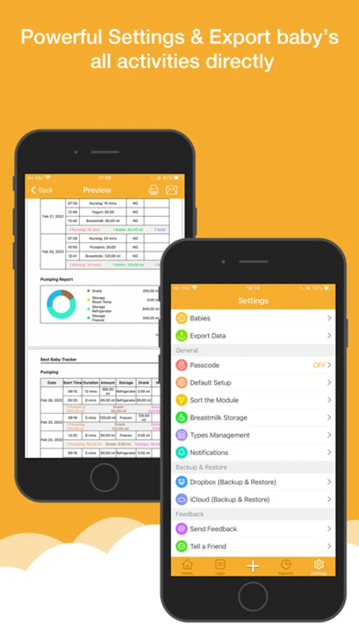 - Sync data between different devices to share baby’s day with your partner or carer.