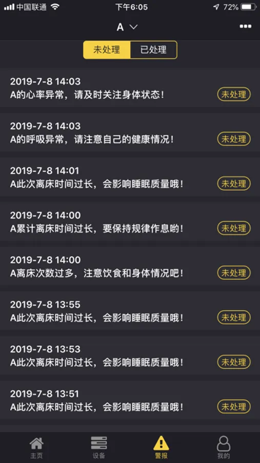 体动及在床/离床异常状态判定