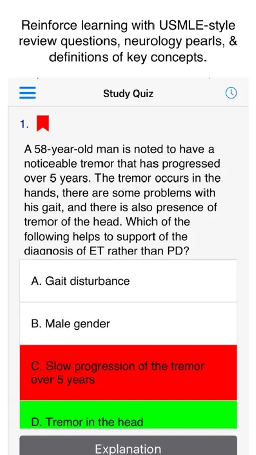 This free application includes 1 sample case study from the 55 that are available through an in-app purchase of $39.99 of Case Files Neurology, 4th Edition. The 55 high-yield neurology cases will help you excel on the clerkship and improve your shelf-exam score.
