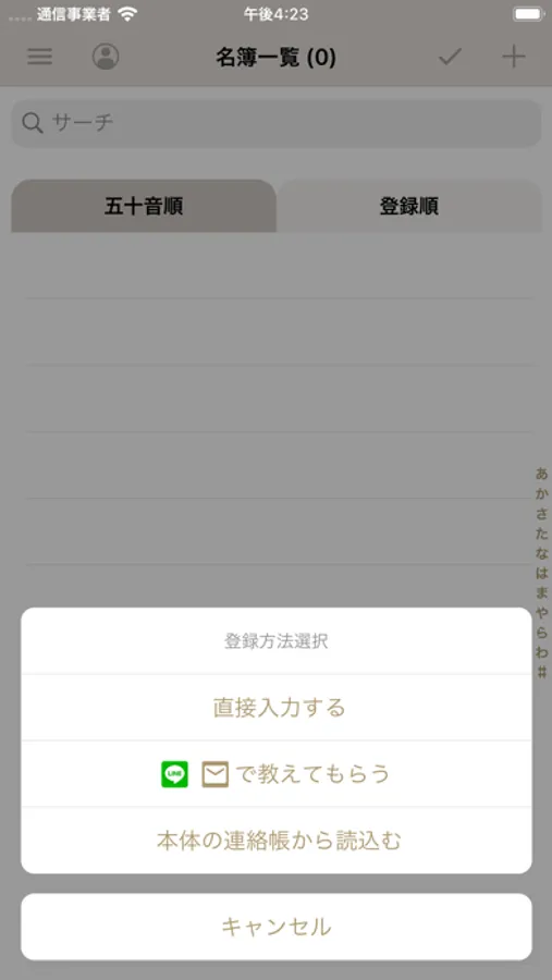 2)住所録を収集する方法を選択します。(知り合いに登録依頼・ご自身で入力・デフォルトの連絡帳からインポート)