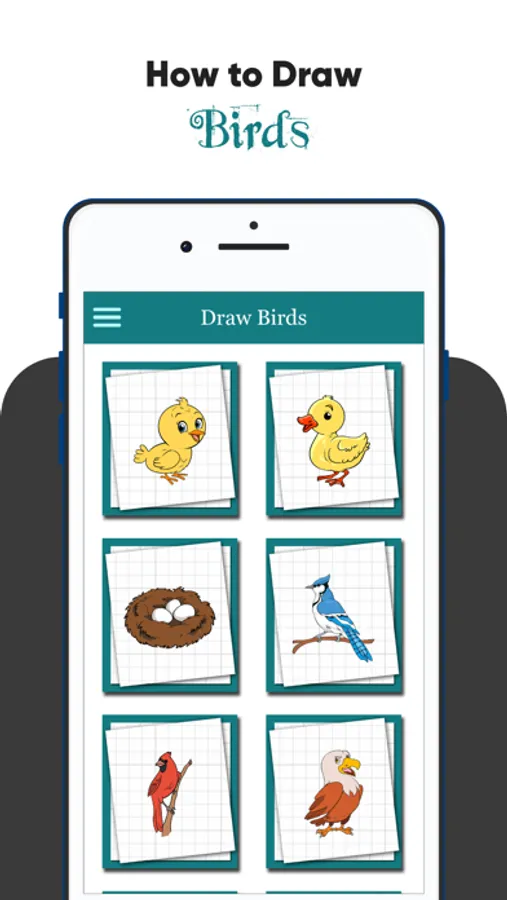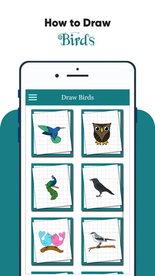 This app How to draw Birds is a fun activity for teaching your kids How to Draw Birds . It includes a large collection of Birds classified by level of difficult