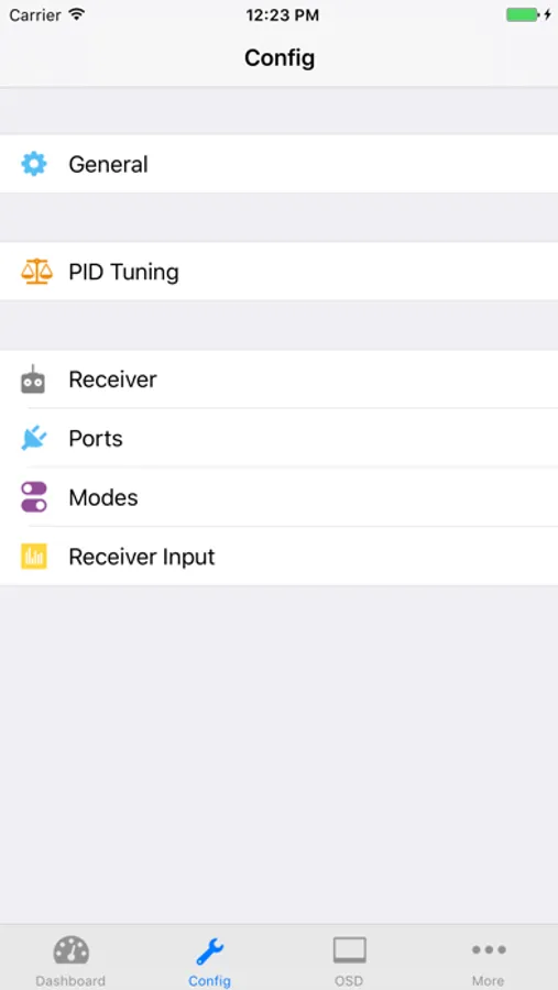 App can be used to configure the general parameters, PID, OSD, receiver, ports, modes and channels of flight controller.