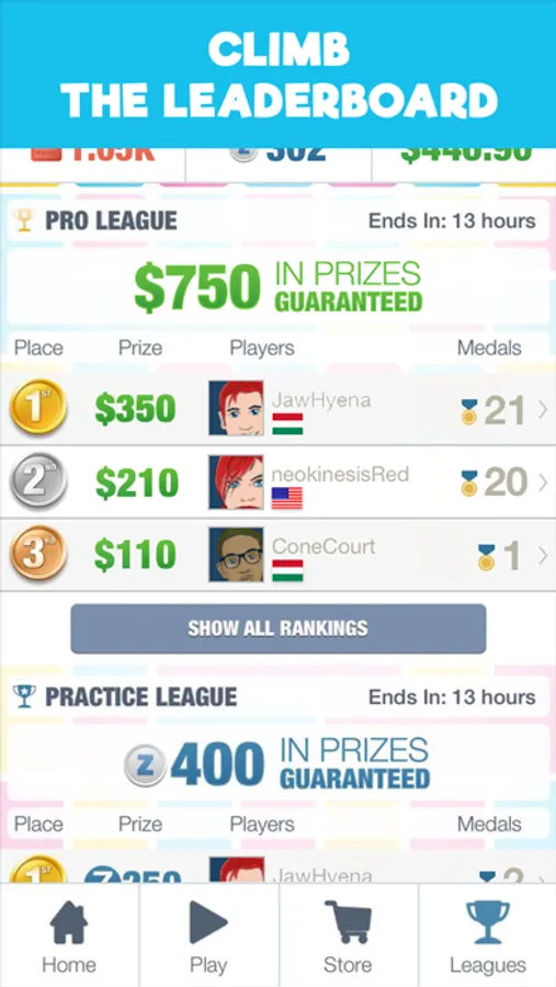 - Compete for the top rank among friends and on worldwide Skillz leaderboards.