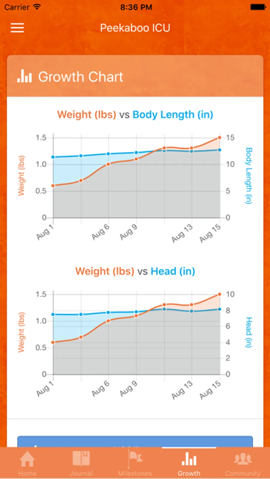 Growth Chart and Trackers: This fully customizable section allows parents to log and track their baby's daily weight, length, and head circumference. This information is automatically plotted on their very own infant growth chart.