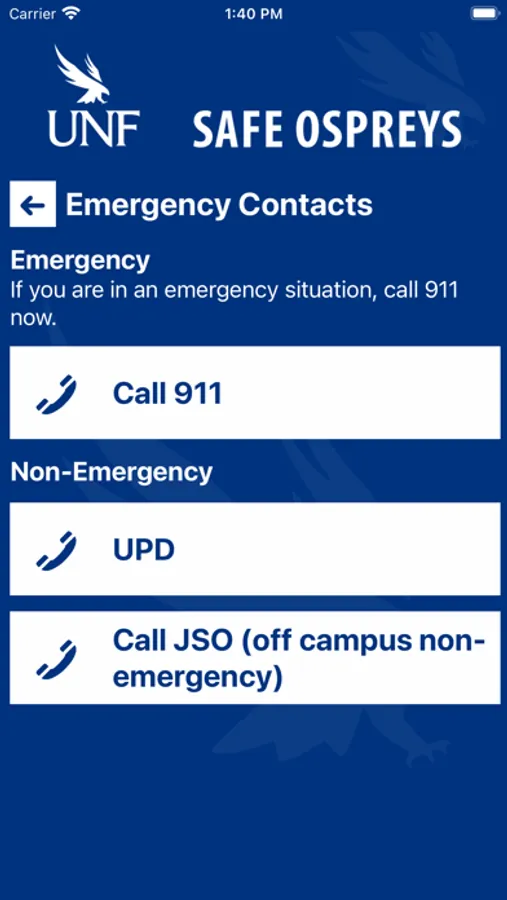 - Emergency Contacts: Contact the correct services for the UNF area in case of an emergency or a non-emergency concern