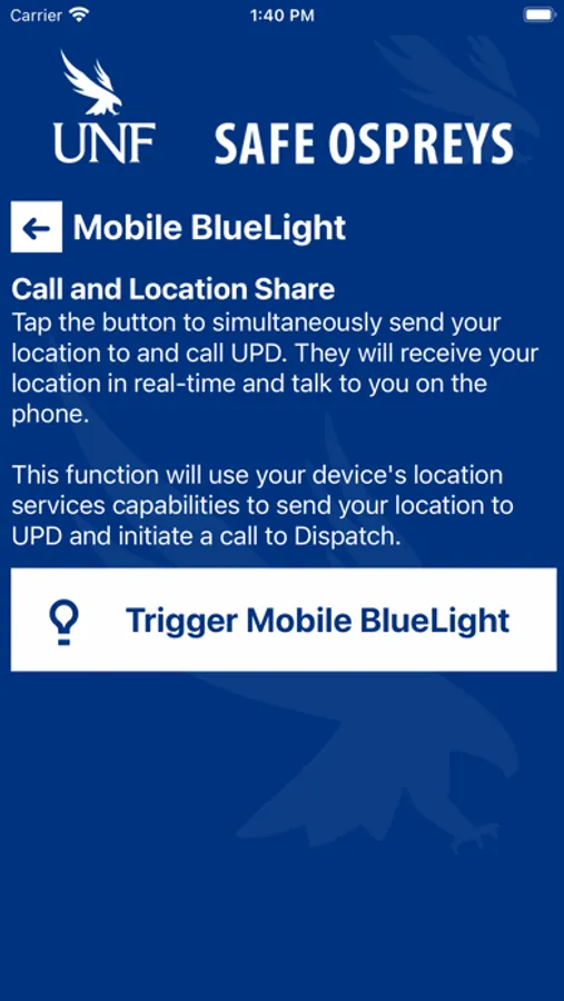 - Mobile Bluelight: Send your location to UNF security in real-time in case of a crisis