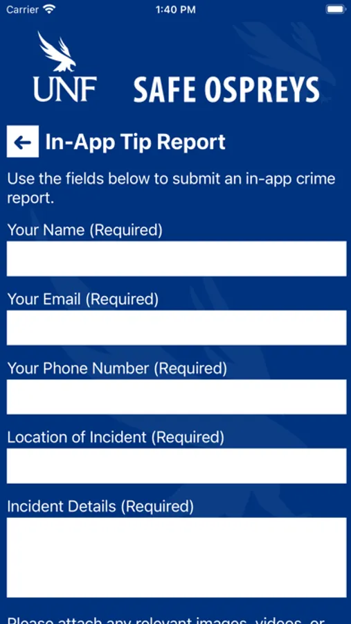 - Tip Reporting: Multiple options to report a safety/security concern directly to UNF PD.