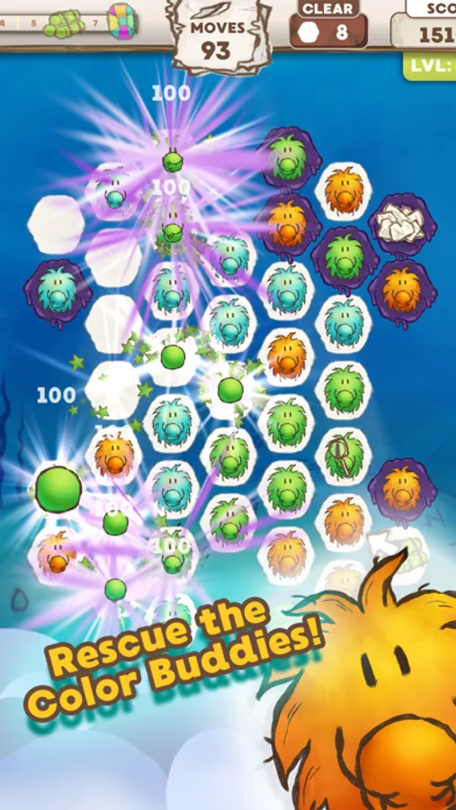 Rescue as many playfully plush Color Buddies as you can. Match three or more and then watch the crazy chromatic chain reactions! Crush tiles by destroying each impeding layer, and use explosive power-ups to maximize your score! Enhance your experience by earning a bounty of unique achievements, prizes, and rewards as you advance through the many vibrant worlds. Each eye-catching level is even more colorful than the last!