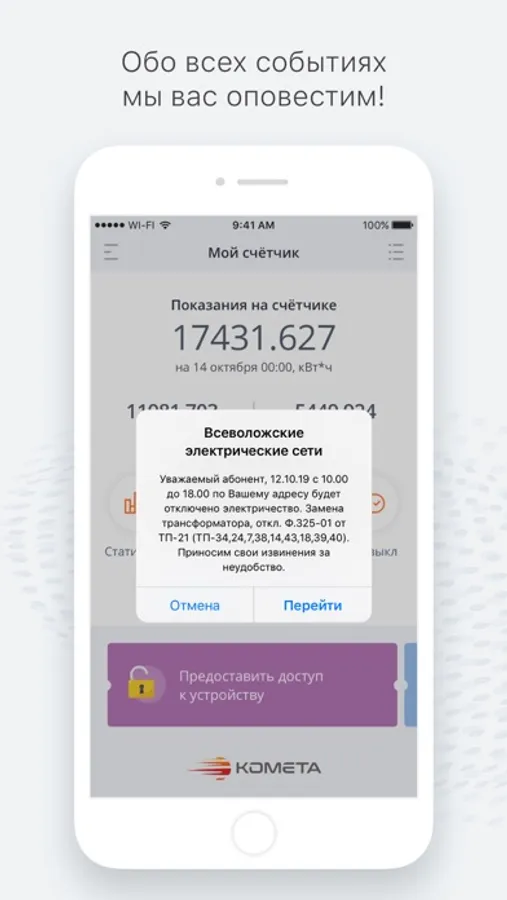 Мобильное приложение КОМЕТА IoT - позволяет быть на связи с умными устройствами в любое удобное время, в любом удобном месте.