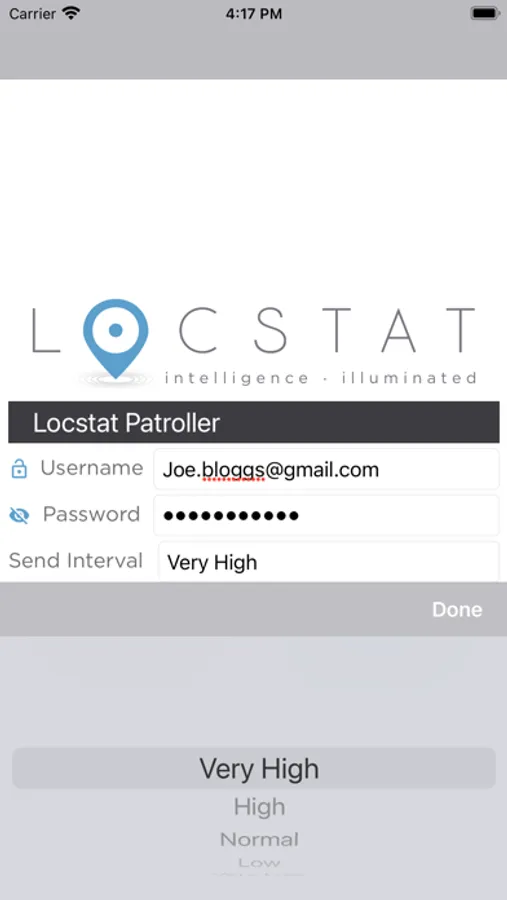 Once registered, you use the same username (your email address) and password (you choose this) which you used when you registered with reporter, to log-in to the app.