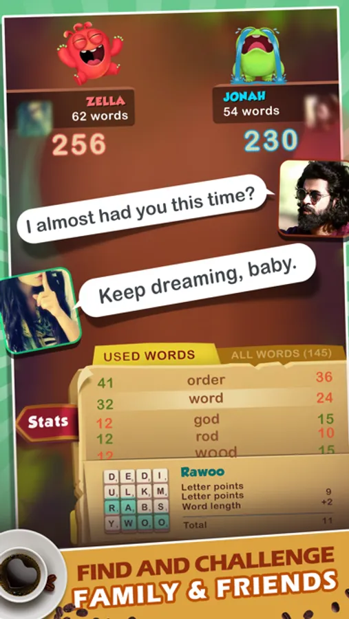 Get hooked on to a constant challenge in this brain teaser. Are you tired of old and repetitive gameplay? Get on with Word Fiends with interesting boards and trivia. Make the obvious words before your opponent to ensure you get more points in the match. Relive the nostalgia of old word games in a completely new real time boggle design. Play as many rounds of words with every round giving a different challenge.