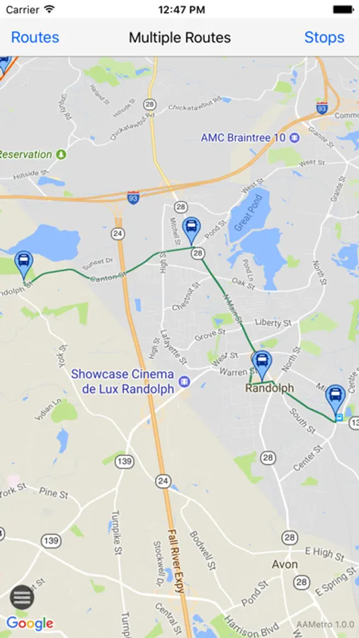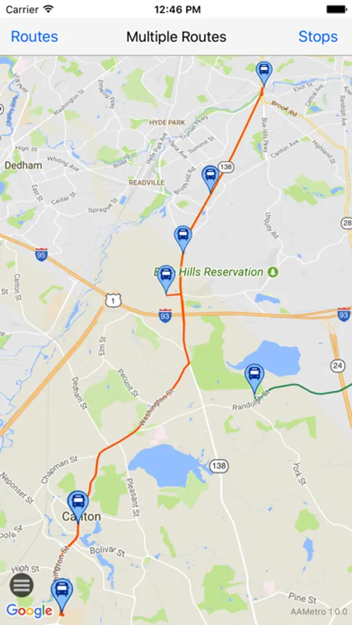 - Interactive map shows location of user, nearby stops and real-time location of shuttles.