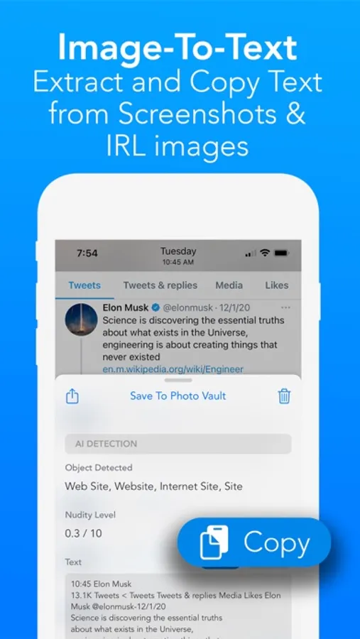 Orga is the smartest private photo vault available. The 1st to use privacy AI for Image To Text Conversion to easily search for and copy text in screenshots and IRL images. Orga is completely private & never uploads any images to a cloud. This is possible because the powerful AI works only natively on your device.