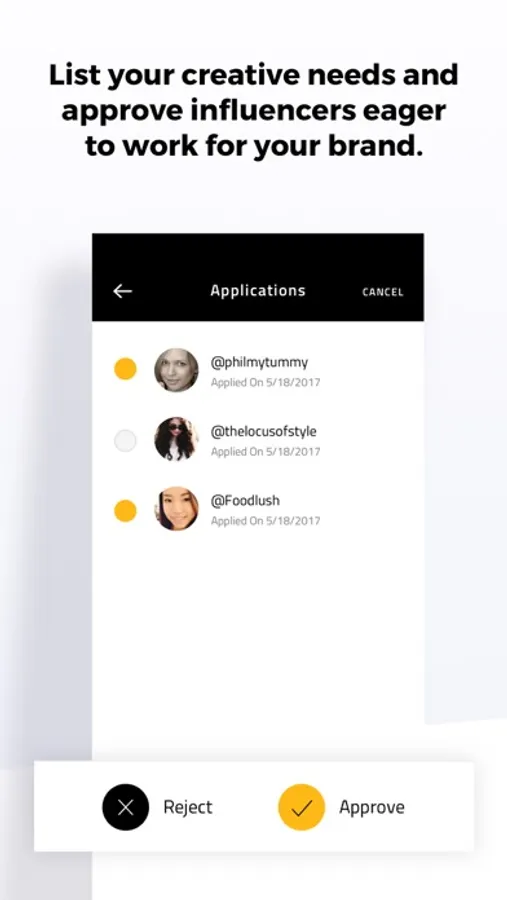 Easy To Use - Scroll through the app and apply to campaigns with one click. No need to find the right emails and then hope to hear back from a brand.
