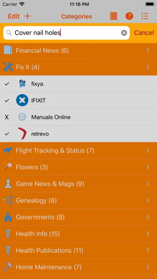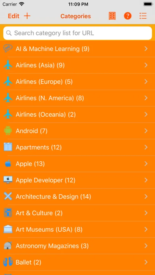 * Save modified category list to device which is restored automatically the next time the app is launched.