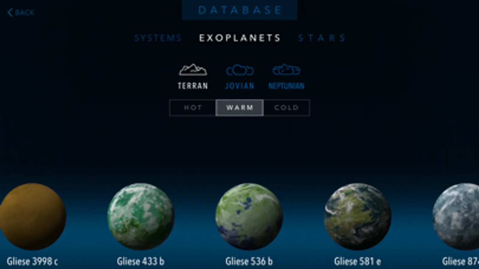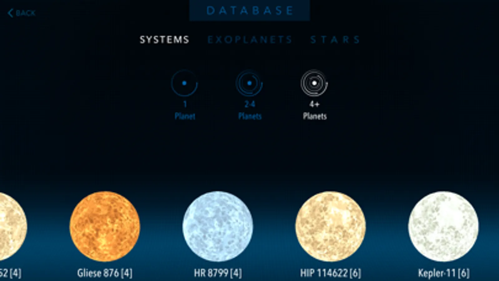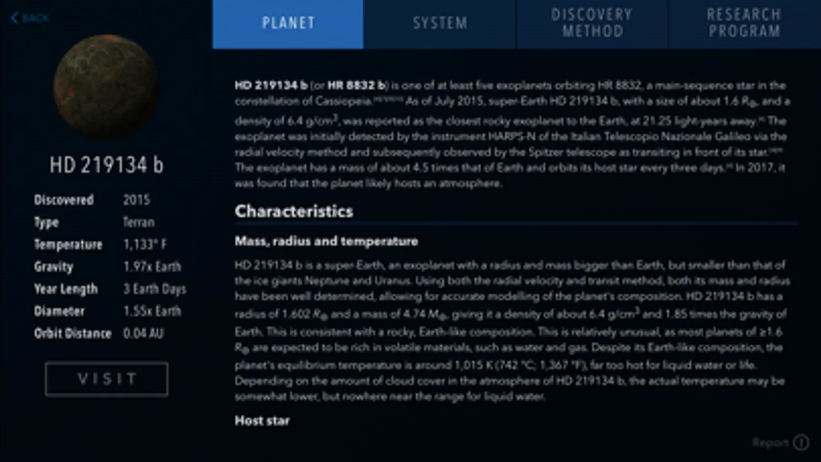 [•] Data-rich information panels to learn about planet attributes, parent system, discovery method, and research programs credited with its discovery
