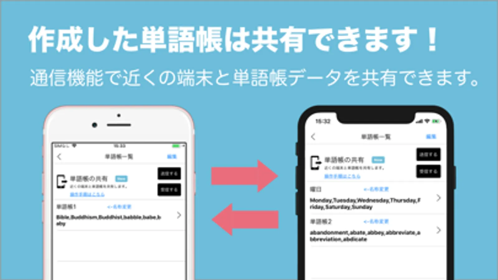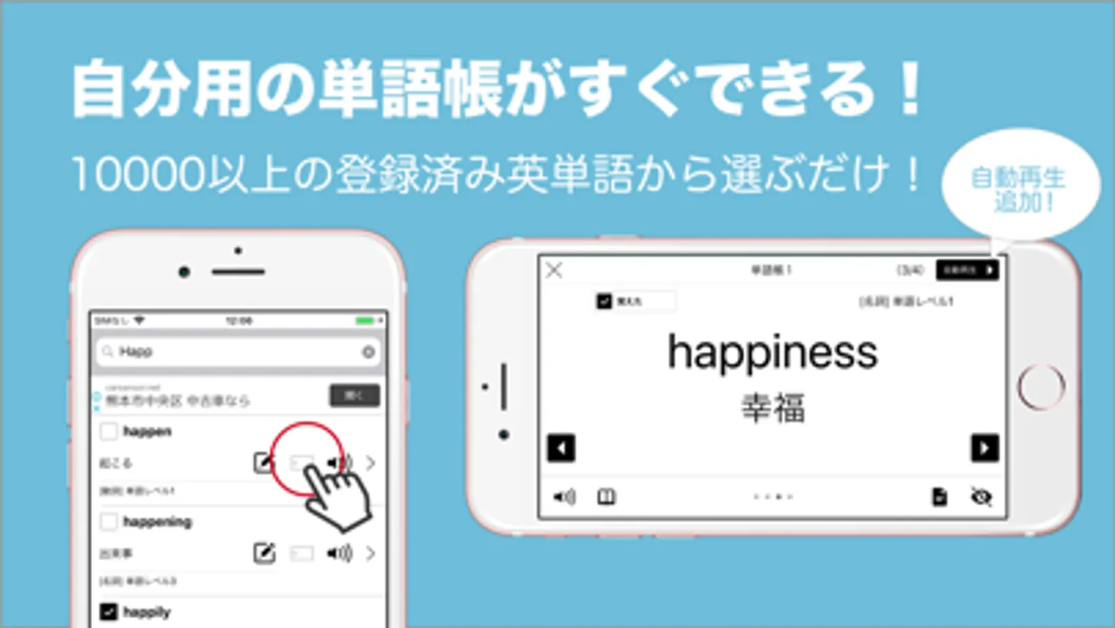 簡単に英単語を検索、すぐに単語帳を作成して学習をはじめられます。