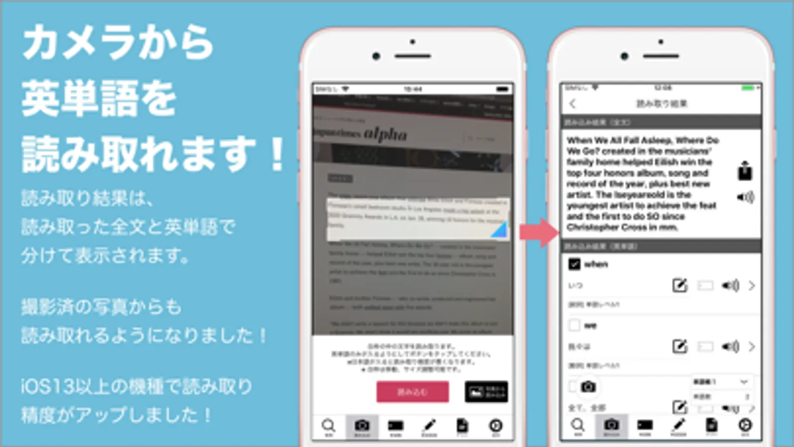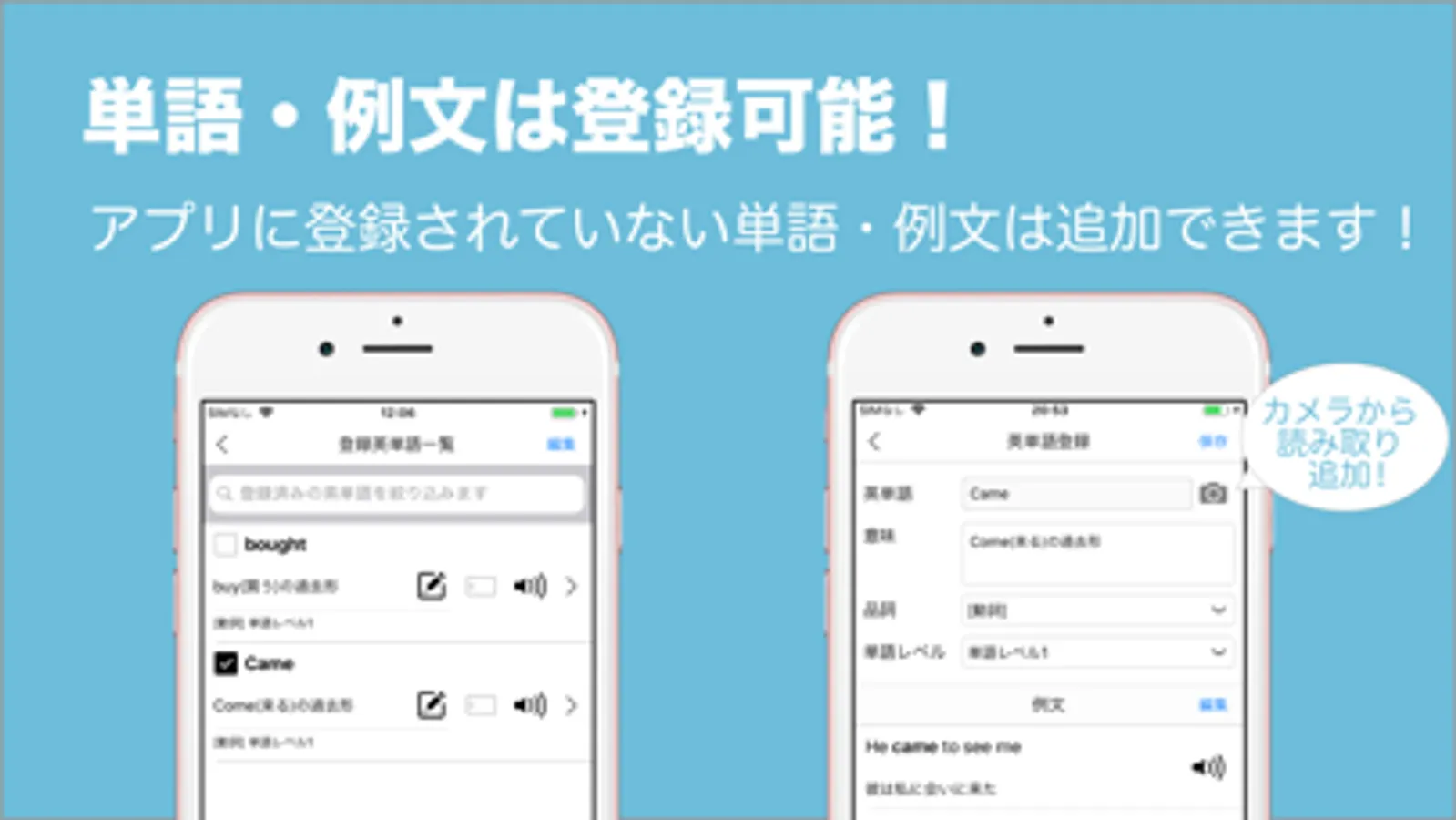 ※カメラから読み取りは明るいところで、英単語のみになるようにして使用してください。