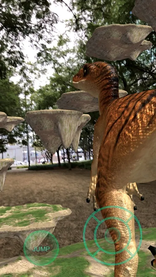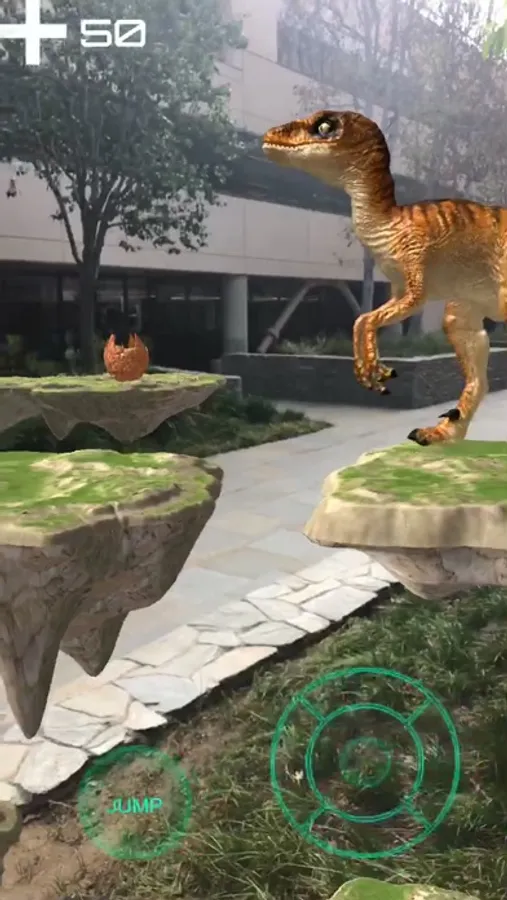 Experience a 3-D platformer like never before. Dinos AR immerses you in an augmented reality gaming environment. Walk through the 3-D environment and skillfully control your Velociraptor character as it runs, jumps, locates eggs and rescues its hatchlings from nearby lurking predators. Walk around the entire game environment to analyze the best route and stay out of harm's way. One wrong move and you could be lunch for a hungry T-Rex.