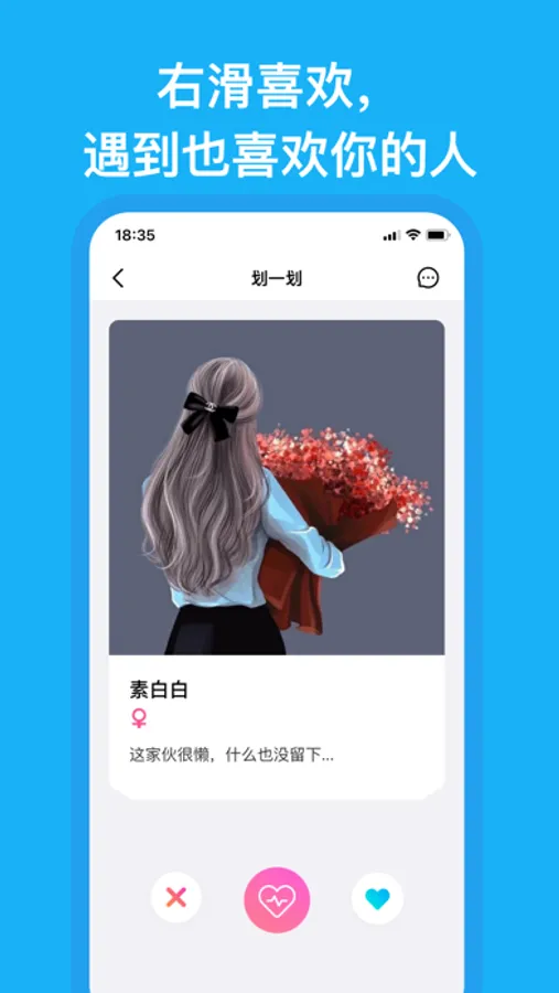 右划喜欢、左滑无感,互相喜欢立即建立聊天。快来玩耍吧