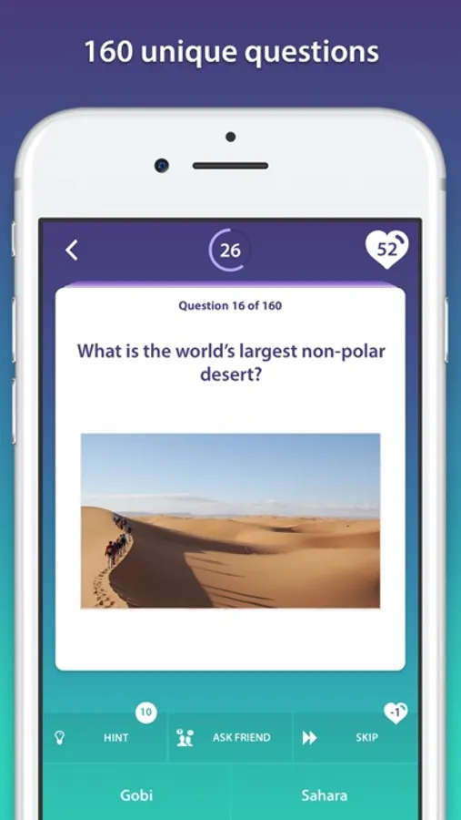 Do you know who discovered Hawaii? Or what lake is the saltiest one in the world? Answer these world geography quiz questions and many more in this geo trivia game and have a good time. Geography can’t be boring when you answer world geography trivia questions. Download Geography Quiz Game and find out how much you know about capital cities and countries of the world!