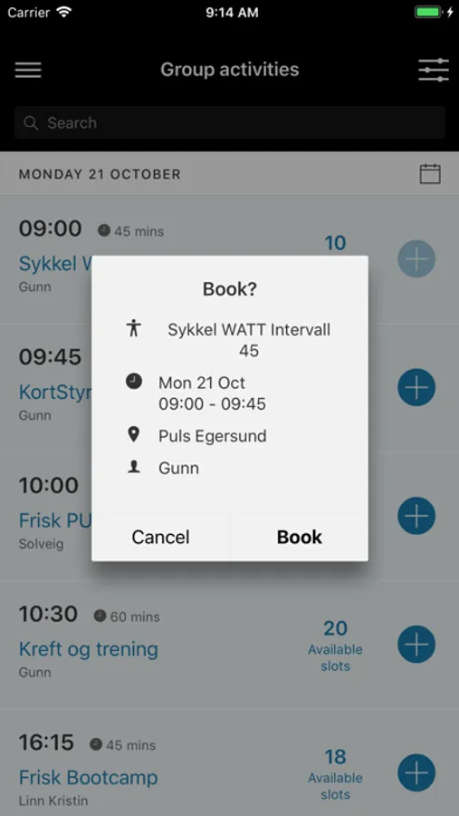 Med denne appen kan du enkelt bestille plass på gruppetimer hos PULS Egersund.