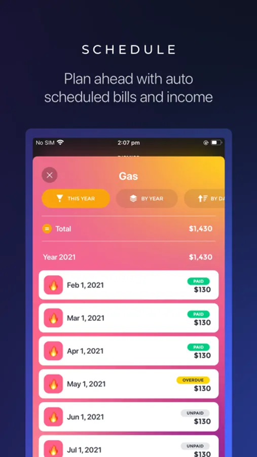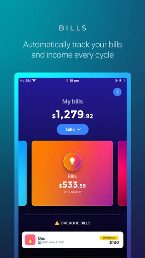 • Bills - Automatically generate a schedule of your bills and track payments of each cycle