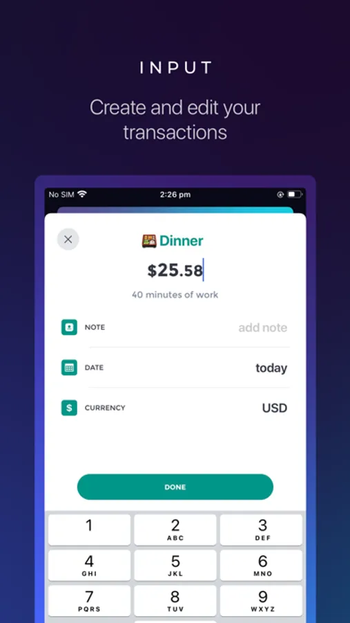 • Export - Export your transactions to use and manipulate your data outside of the app