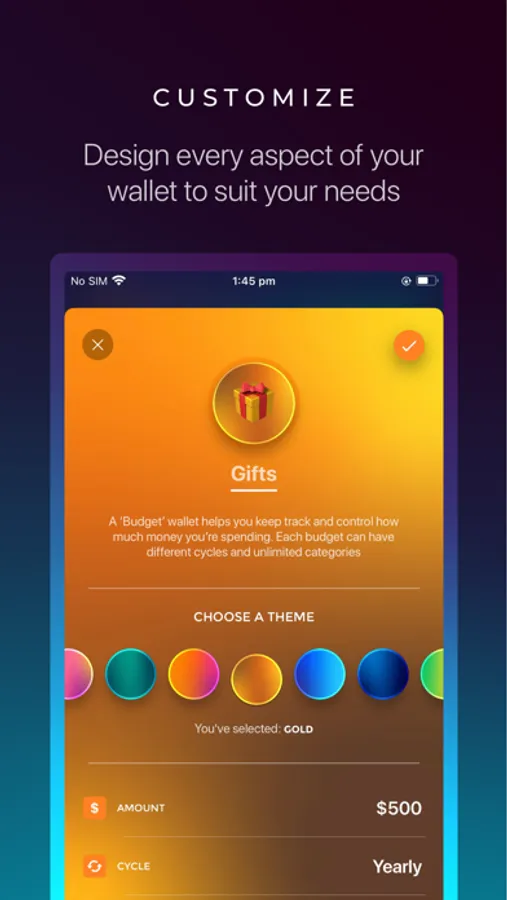 Personalize the app like your own journal with many different themes and colors available to suit your own style. Take advantage of extensive configurations from multi currency support, cycle management, automatic tracking, budget rollovers and many more.
