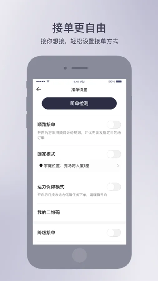 4.接单自由:接你想接,轻松设置接单模式,预约单、机场订单、绑定订单、特价单绑定等各种模式任你选择,还能设置回家模式,回家途中避免空驶,首汽约车更好保障您的利益。