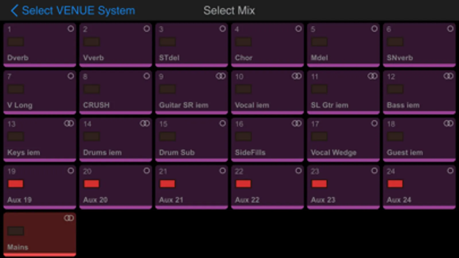VENUE | On-Stage allows controlling individual Aux mixes from iPad or iPhone devices. Just connect your device to the same Wi-Fi network as your VENUE console and select your mix.