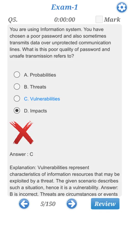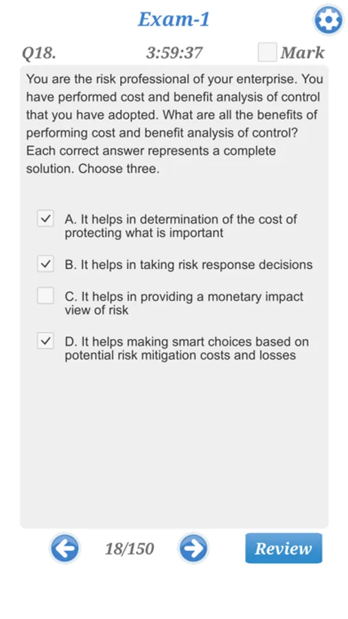 - Easily go back to the questions which you want to review again with "Mark" and "Review" features
