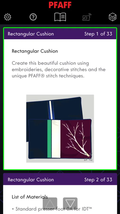 The PFAFF® CreatorCue app allows you to view step-by-step sewing instructions and tutorials from the comfort of your sofa, cutting table, ironing board, or even while shopping! Start by browsing through the sewing instructions and tutorials featured within the app or on your mySewnet™-enabled sewing machine. Once you've selected something new to create, simply follow the step-by-step sewing instructions provided within the CreatorCue app and in your sewing machine. Every step syncs automatically between the app and your machine via your mySewnet™ account allowing you to follow instructions without missing a beat.