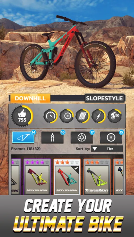 Use frames, forks, rims, and drivetrain components from the best manufacturers in the world. Craft the perfect bike, then unleash it on the mountains and your competition. Fully customize your look to tell other players who you are as they watch you ride away.