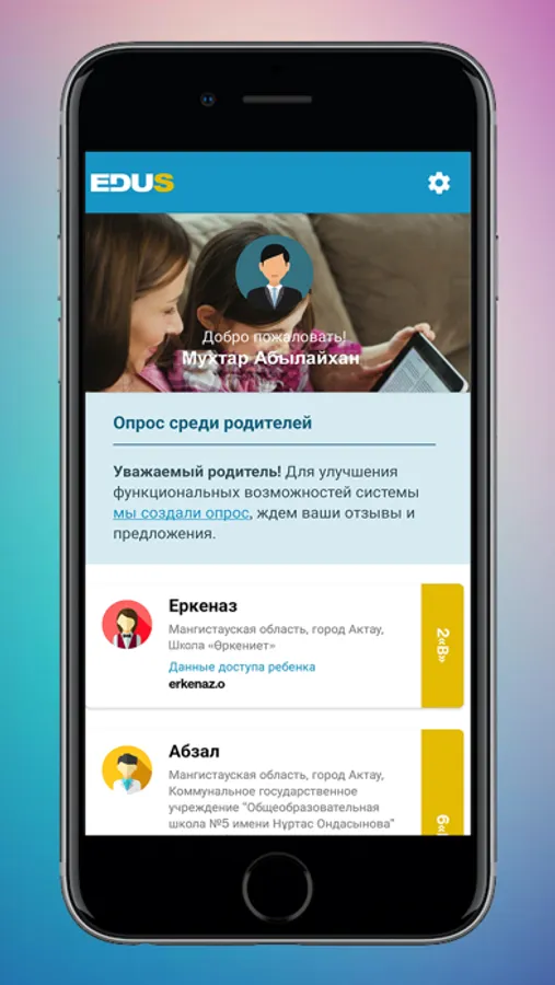 Мобильное приложение для доступа родителей в образовательную платформу EDUS "Электронная система учебного процесса школ" (mektep.edu.kz) разработано для родителей, с целью предоставления им возможность отслеживания успеваемости своего ребенка в школе (дневник, журнал, табель), а также, для обратной связи с учителями.