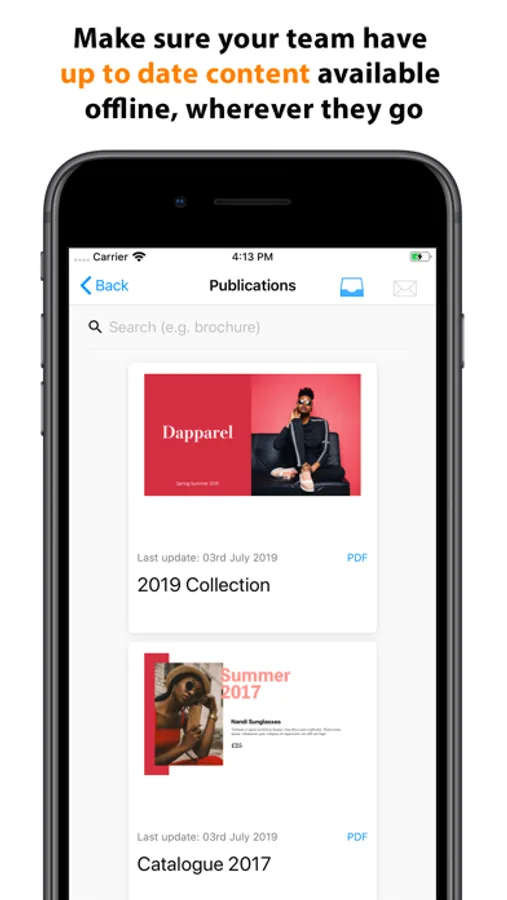 PocketMEDIA is an iPad app that enables departments to share the latest brochures, manuals, videos and images with teams working in the field. It's cost effective, always up-to-date, and works without an internet connection.