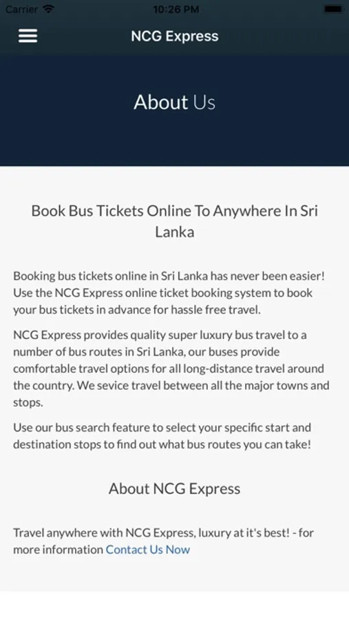NCG Express provides quality super luxury bus travel to a number of bus routes in Sri Lanka, our buses provide comfortable travel options for all long-distance travel around the country. We service travel between all the major towns and stops.